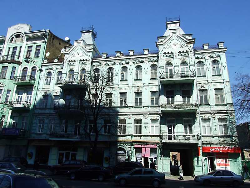 2009 р. Головний фасад Розмір зображення: 800:600 піксел 8 квітня 2009 р. Фото М.І.Жарких. Вкладені елементи Вікна 4-го поверху Фрагмент 4-го поверху з баштою Вікна 3-го поверху (+) Вікна 2-го поверху (+)