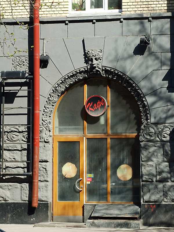 2009 р. Фрагмент 1-го поверху Розмір зображення: 600:800 піксел 9 квітня 2009 р. Фото М.І.Жарких. Вкладені елементи Замковий камінь вікна 1-го поверху (+)