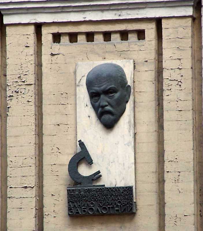 Меморіальна дошка Д.К.Заболотному Розмір зображення: 703:800 піксел 9 квітня 2009 р. Фото М.І.Жарких. Вище | Наступна сторінка