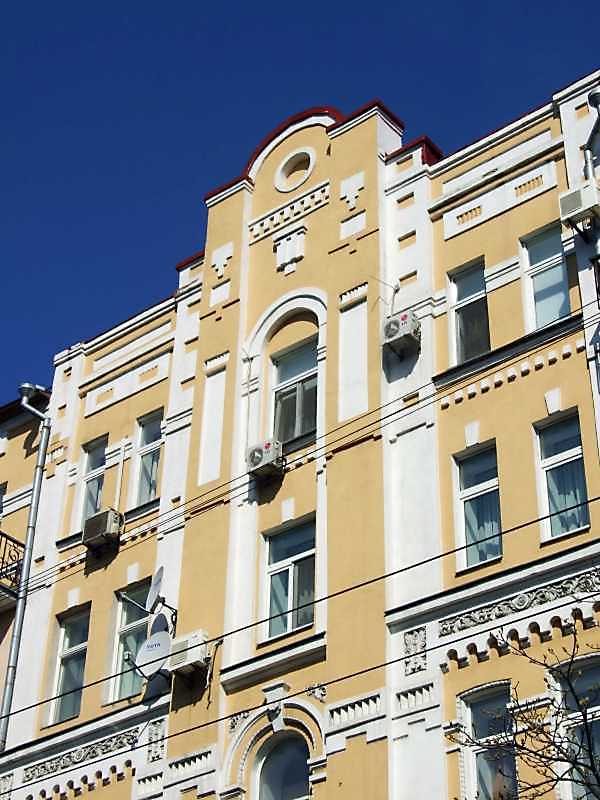 Фрагмент 4-5-го поверхів з фронтоном Розмір зображення: 600:800 піксел 9 квітня 2009 р. Фото М.І.Жарких. Вище | Наступна сторінка