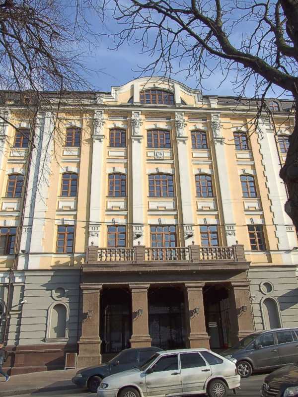 2021 р. Центральна частина головного фасадуРозмір зображення: 600:800 піксел Фото М. І. Жарких, 1 квітня 2021 р. |