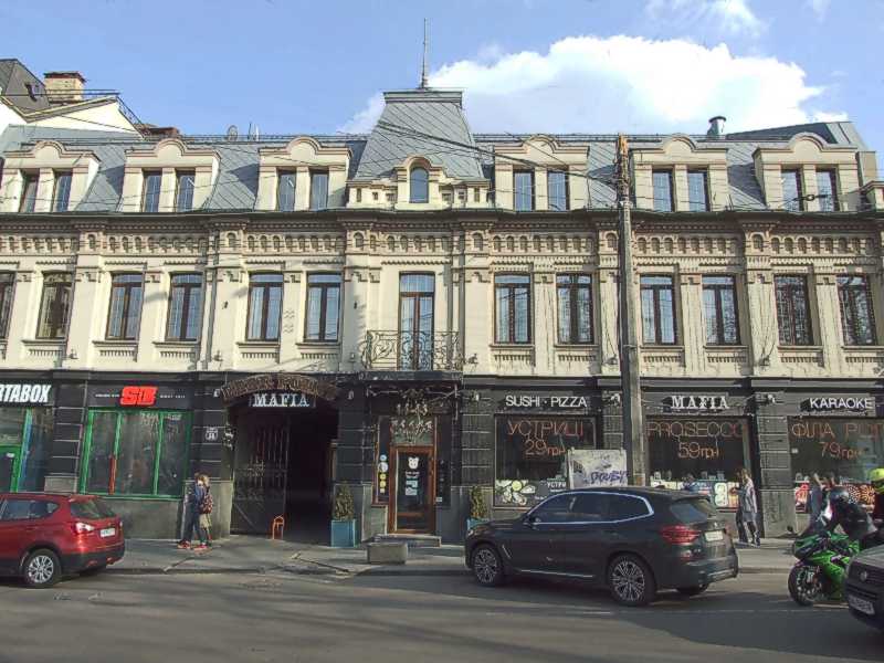 2021 р. Головний фасад (2) Розмір зображення: 800:600 піксел Фото М. І. Жарких, 1 квітня 2021 р. Вкладені елементи Балкон 2-го поверху і мансарда