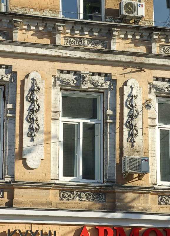 Вікно 2-го поверху Розмір зображення: 578:800 піксел Фото М. І. Жарких, 1 квітня 2021 р. Вкладені елементи Антаблемент
