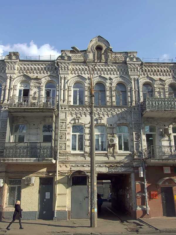 Центральна частина головного фасаду Розмір зображення: 600:800 піксел Фото М. І. Жарких, 1 квітня 2021 р. Вкладені елементи Вікна 3-го поверху Вікна 2-го поверху