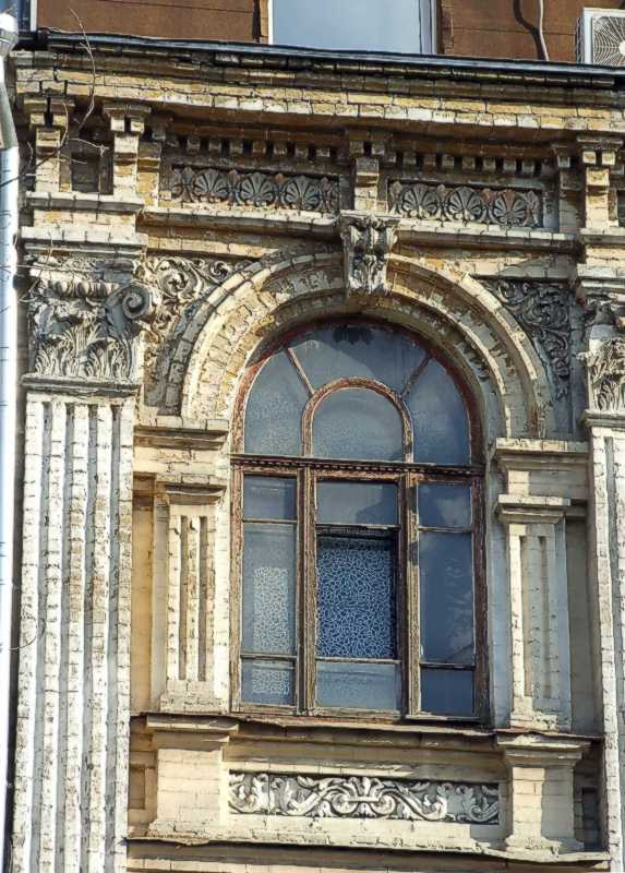 Вікно 3-го поверху сходової клітки Розмір зображення: 573:800 піксел Фото М. І. Жарких, 1 квітня 2021 р. Попередня сторінка | Вище | Наступна сторінка