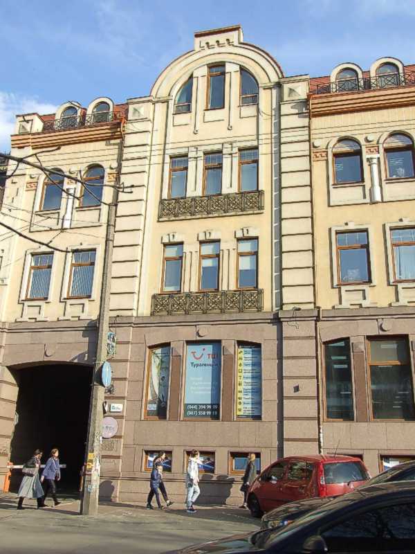 2021 р. Центральна частина головного фасадуРозмір зображення: 600:800 піксел Фото М. І. Жарких, 1 квітня 2021 р. |