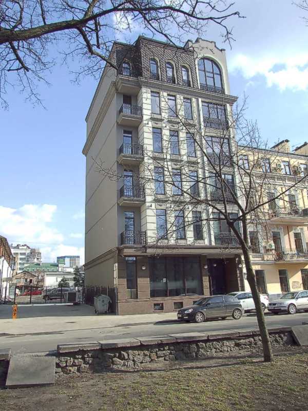 Бізнес-центр (№ 64)Розмір зображення: 600:800 піксел Вигляд з півночі. Фото М. І. Жарких, 1 квітня 2021 р. Мтарий 2-поверховий будинок, який ще стояв у 2007 р., знесено задля цього офісного дива. |
