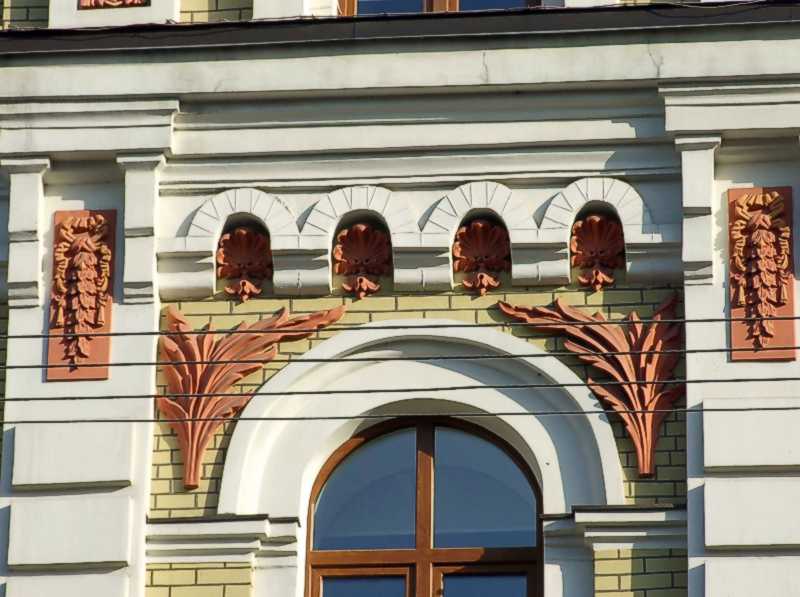 Тимпан вікна 3-го поверху Розмір зображення: 800:597 піксел Фото М. І. Жарких, 1 квітня 2021 р. Вище | Наступна сторінка