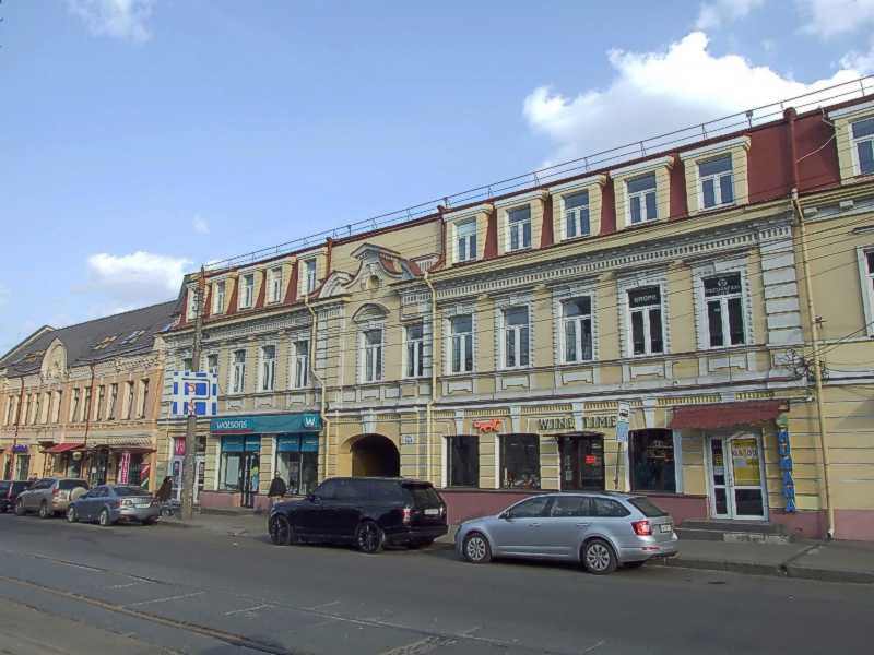 2021 р. Ліва частина фасаду по вул. Верхній ВалРозмір зображення: 800:600 піксел Вигляд із заходу. Фото М. І. Жарких, 1 квітня 2021 р. |