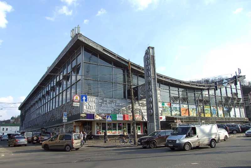 2021 р. Загальний вигляд з півночіРозмір зображення: 800:536 піксел Ліворуч – вул. Житньоторзька, праворуч – вул. Верхній Вал. Фото М. І. Жарких, 1 квітня 2021 р. |