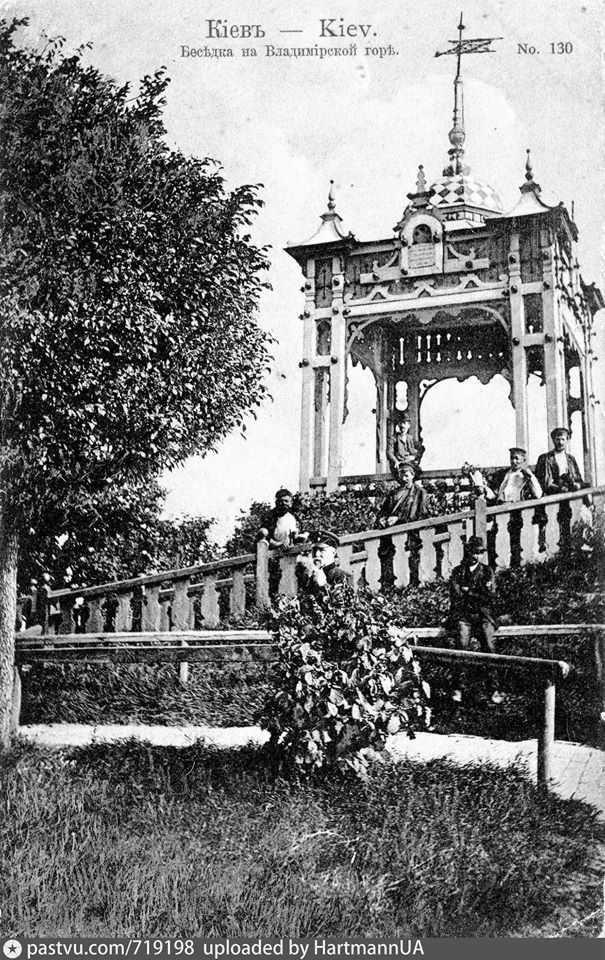 1895..1905 рр. Альтанка на Володимирській гірціРозмір зображення: 605:960 піксел Поштівку 1895..1905 рр. опублікував Олег Заварзін 25.02.2020 р. , також |