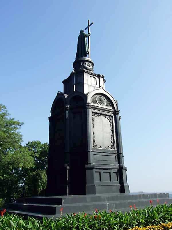 2007 р. Загальний вигляд з позиції А1 Розмір зображення: 600:800 піксел 17 серпня 2007 р. Фото М.І.Жарких. Вкладені елементи Постать князя Циліндричний постамент Фрагмент постаменту