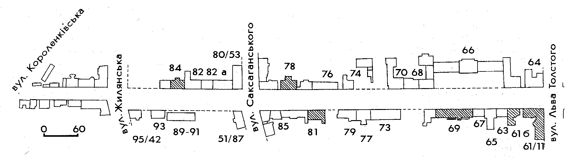 План забудови (61 – 95)Розмір зображення: 1846:513 піксел Джерело: Звід пам’яток історії і культури України. – К.: 1999 р., т. 1 (Київ), с. 252. |