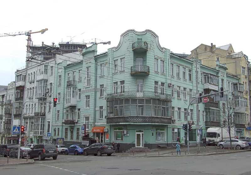 2021 р. Загальний вигляд з північного сходуРозмір зображення: 800:556 піксел Ліворуч – вул. Володимирська, праворуч – вул. Жилянська. Фото М. І. Жарких, 31 березня 2021 р. |