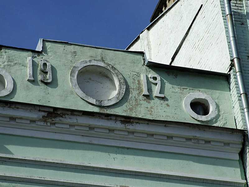 2020 р. Фронтон з датою 1912 Розмір зображення: 800:600 піксел Фото М. І. Жарких, 13 березня 2020 р. Попередня сторінка | Вище | Наступна сторінка