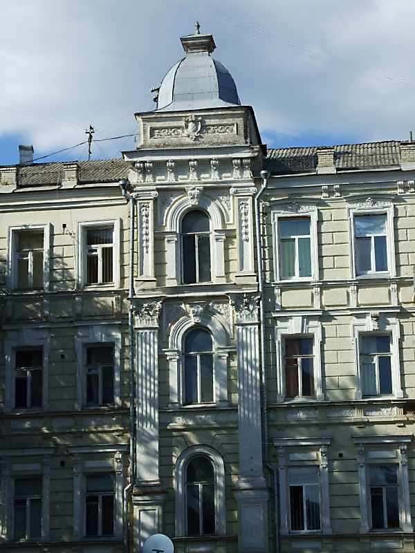 Центральна частина фасаду Розмір зображення: 600:800 піксел 3 серпня 2007 р. Фото М.І.Жарких. Вкладені елементи Вікно 4-го поверху Вікно 3-го поверху Вікно 2-го поверху
