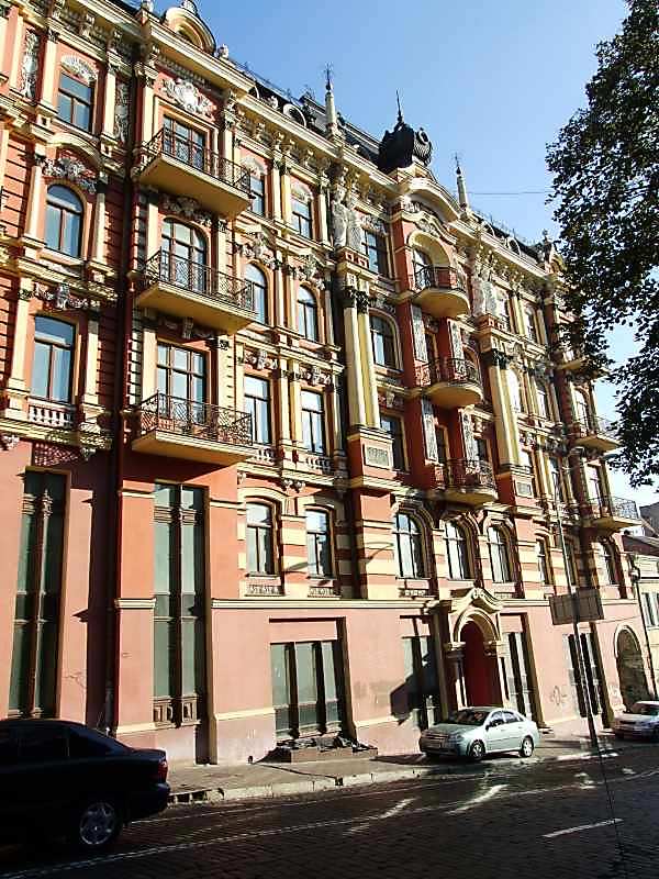 2007 р. Фрагмент фасаду по вул.Прорізній Розмір зображення: 600:800 піксел 18 жовтня 2007 р. Фото М.І.Жарких. Вкладені елементи Вікно 3-го поверху Вікно 4-го поверху Балкон 5-го поверху Вікна 2-го поверху Вікна 3-го поверху Вікна 4-го поверху Вікна 5-го поверху