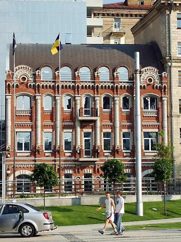 2007 р. Головний фасад пам’яткового будинку № 17 після «реконструкції»Розмір зображення: 600:800 піксел 18 липня 2007 р. Фото М.І.Жарких. |