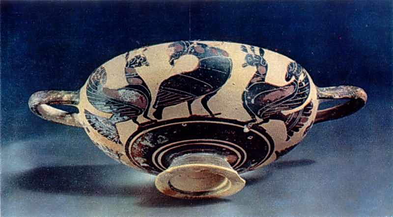 Кілік з зображенням пташиних грифонів. Розпис майстра «Фриза птахів». Корінф. VI ст. до н.е. Глина. Висота 6 см. Київський історичний музей.