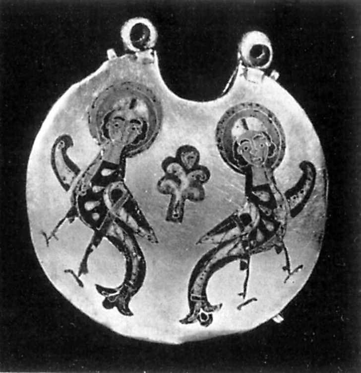 КолтРозмір зображення: 728:751 піксел Колт Золото. Перегородчатая эмаль. XII в. Киевский государственный исторический музей. Джерело: Рыбаков Б.А. Русское прикладное искусство 10 – 13 вв. – Лг.: 1971 г., с. 46. |