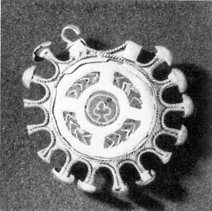 КолтРозмір зображення: 735:734 піксел Колт Золото. Перегородчатая эмаль. XII в. Киевский государственный исторический музей. Джерело: Рыбаков Б.А. Русское прикладное искусство 10 – 13 вв. – Лг.: 1971 г., с. 46. |