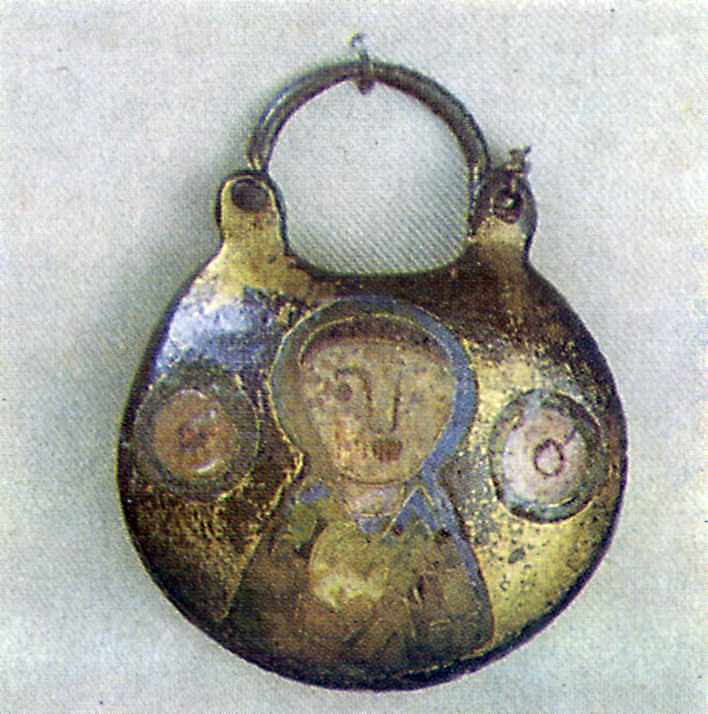 КолтРозмір зображення: 708:714 піксел Колт Медь. Перегородчатая эмаль. Начало XIII в. Киевский государственный исторический музей. Джерело: Рыбаков Б.А. Русское прикладное искусство 10 – 13 вв. – Лг.: 1971 г., с. 46. |