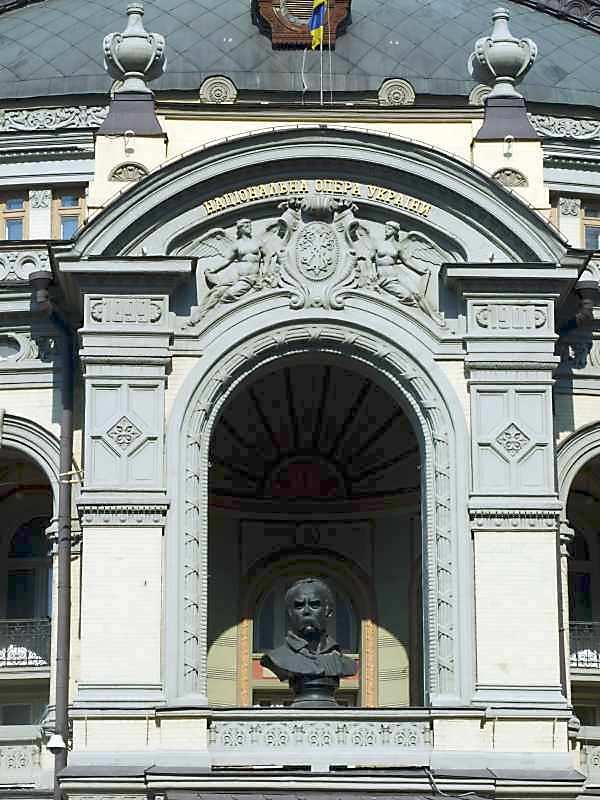 Центральна лоджія Розмір зображення: 600:800 піксел 19 липня 2007 р. Фото М.І.Жарких. Вкладені елементи Скульптурна група над центральною лоджією (+) Бюст Т.Г.Шевченка (+)