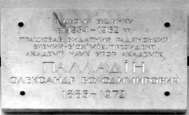 Фото меморіальної дошки (О.В. Палладін) Розмір зображення: 800:485 піксел Попередня сторінка | Вище | Наступна сторінка