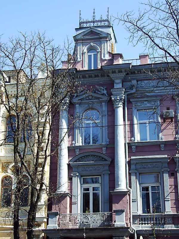 Фрагмент 2-3-поверхів Розмір зображення: 600:800 піксел 8 квітня 2009 р. Фото М.І.Жарких. Вкладені елементи Башточка Вікно 3-го поверху Вікно 2-го поверху Ліва каріатіда Права каріатіда