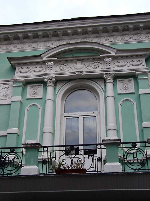 Балкон 2-го поверху Розмір зображення: 600:800 піксел 17 вересня 2012 р. Фото М.І.Жарких. Вкладені елементи Ґзимс і сандрик Рельєфна вставка