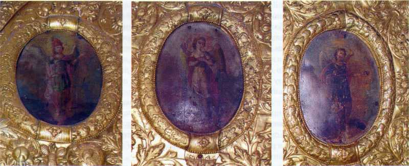 Фрагменти. Архангел Михаїл. Архангел Рафаїл. Архангел ЄгудиїлРозмір зображення: 800:325 піксел Джерело: Пам’ятки України, 2006 р., № 3, с. 94. |