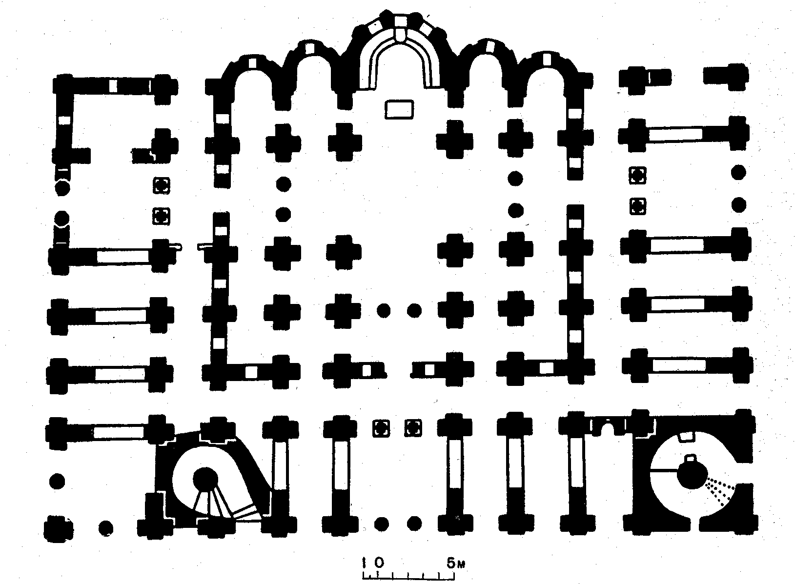 ПланРозмір зображення: 1629:1197 піксел План Софійського собору в Києві. 1037 р. Реконструкція М.Й.Кресального, В. П. Волкова, Ю. С. Асеєва. Джерело: Історія українського мистецтва. – К.: Наукова думка, 1966 р., т. 1, с. 156. |