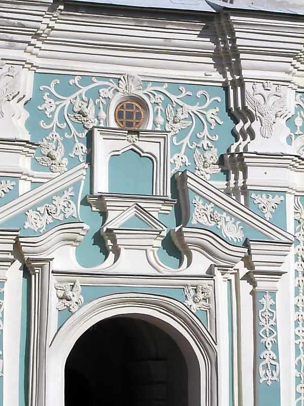2004 р. Декор 1-го ярусу південно-західного фасадуРозмір зображення: 600:800 піксел 7 жовтня 2004 р. Фото М.І.Жарких. |