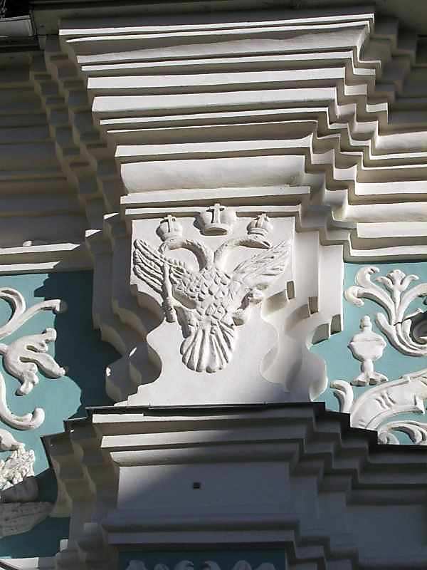 2004 р. Скульптурний декор (південно-західний фасад, 1-й ярус, 3-я від лівого краю пілястра)Розмір зображення: 600:800 піксел 4 листопада 2004 р. Фото М.І.Жарких. |