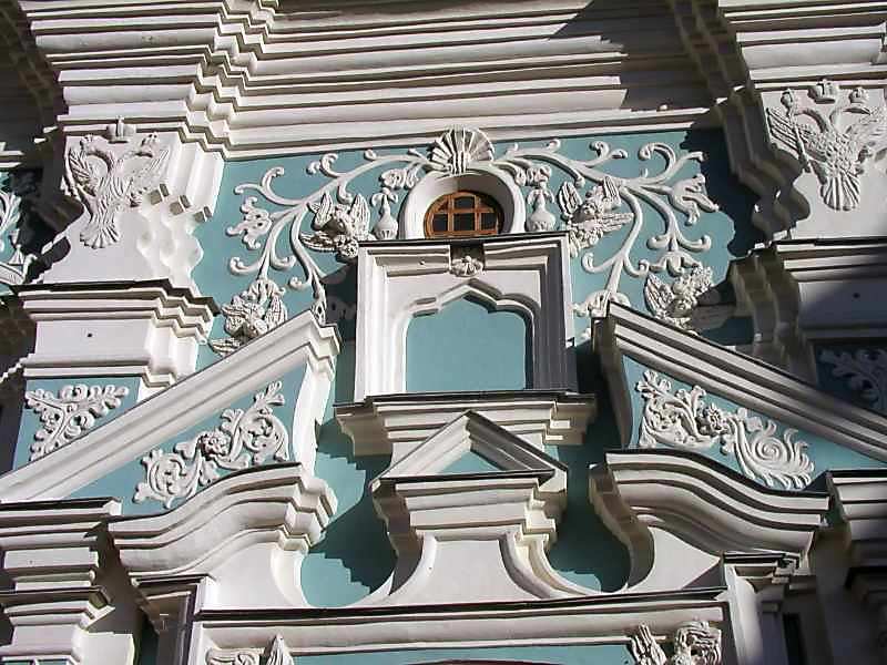 Фронтон (південно-західний фасад, 1-й ярус, центральне прясло)Розмір зображення: 800:600 піксел 4 листопада 2004 р. Фото М.І.Жарких. |