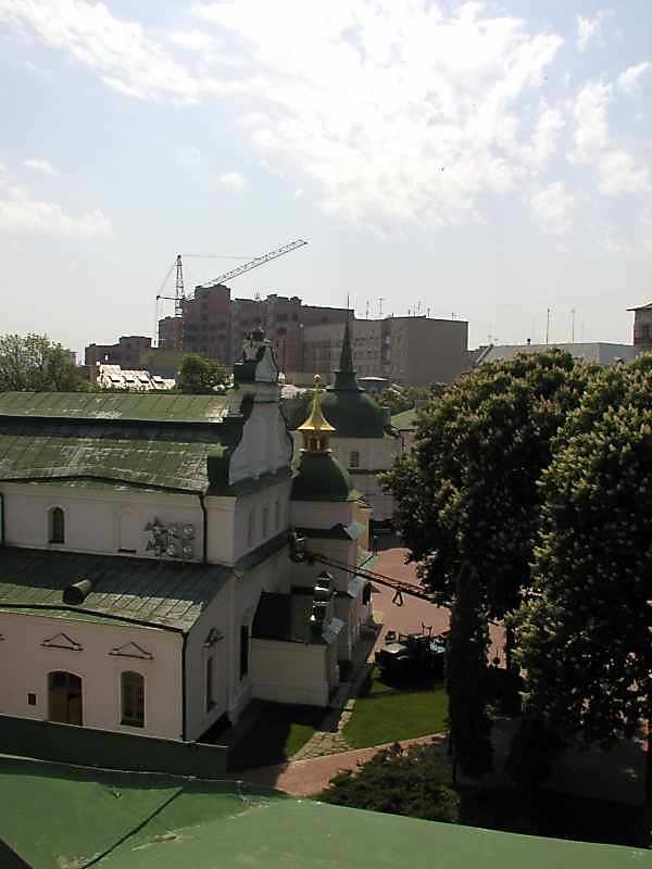 Південно-західний фасад Розмір зображення: 600:800 піксел 25 травня 2005 р. Фото М.І.Жарких. Вкладені елементи Фрагмент південно-західного фасаду і башта на тлі будинку по вул.Ірининській Фрагмент південно-західного фасаду і башта на тлі будинку по вул.Ірининській