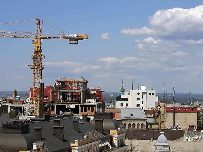 Ліворуч – будинок по Рильському пров., 4 в процесі спорудження; в центрі злегка видно куполи…