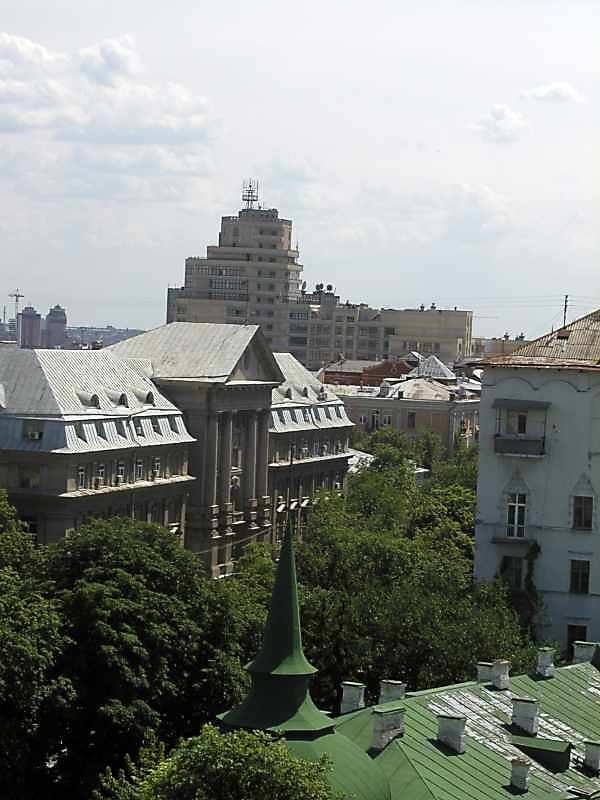2005 р. Будинок СБУ (Володимирська, 33) на тлі колосального офісного центру (Володимирська, 49)Розмір зображення: 600:800 піксел 23 червня 2005 р. Фото М.І.Жарких. |