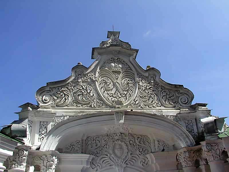 Фронтон Розмір зображення: 800:600 піксел 15 серпня 2005 р. Фото М.І.Жарких. Вкладені елементи Верхня частина Ліве крило Центральна частина Праве крило