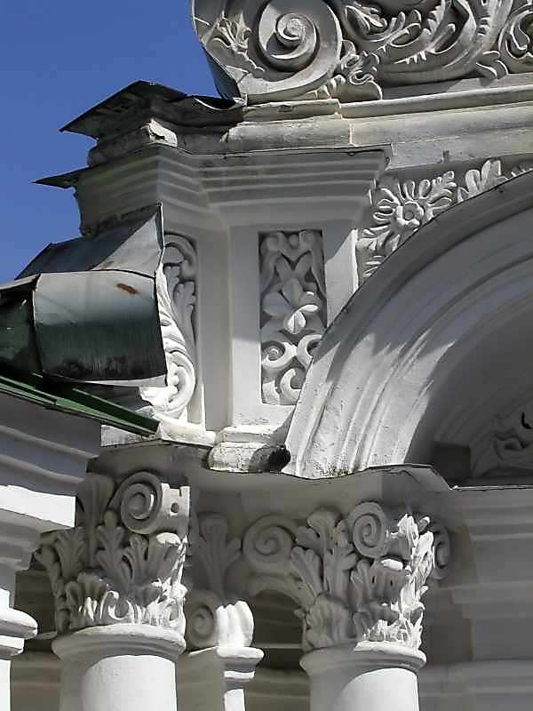 Ліва частина південно-західного пілону Розмір зображення: 600:800 піксел 15 серпня 2005 р. Фото М.І.Жарких. Вкладені елементи 2004 р. Капітелі колон