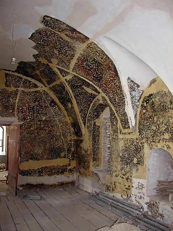 2006 р. 1 поверх. Приміщення ліворуч від головного входу. Залишки розпису.Розмір зображення: 600:800 піксел 25 січня 2006 р. Фото М.І.Жарких. Це вид на південно-західний кут приміщення. |