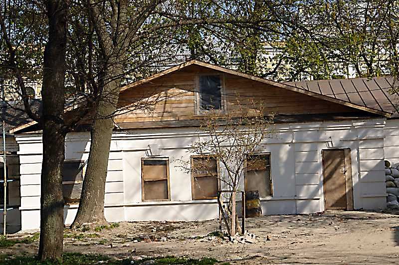2007 р. Центральна частина головного фасаду Розмір зображення: 800:533 піксел 26 квітня 2007 р. Фото М.І.Жарких. Попередня сторінка | Вище | Наступна сторінка