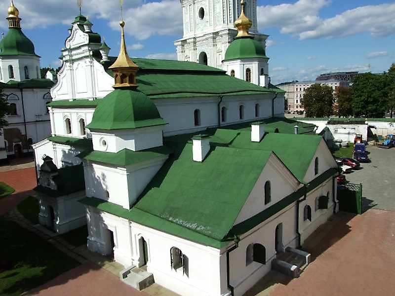 + 2007 р. Верхня частина трапезної на тлі дзвіниці. Вигляд з півдня