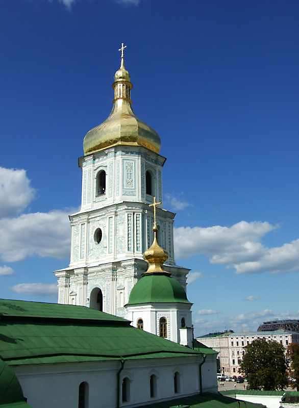 2007 р. Верхня частина трапезної на тлі дзвіниці. Вигляд з півдняРозмір зображення: 586:800 піксел 3 серпня 2007 р. Фото М.І.Жарких. |