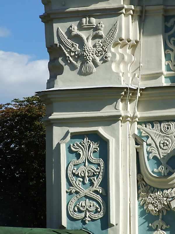Північно-східна пілястра Розмір зображення: 600:800 піксел 3 серпня 2007 р. Фото М.І.Жарких. Вкладені елементи Царський герб (двоголовий орел) на північно-східній пілястрі