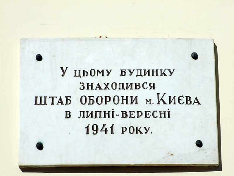 2008 р. Меморіальна дошка штабу оборони Києва (1941 р.)Розмір зображення: 800:600 піксел 2008 р. 9 червня. Фото М.І.Жарких. |