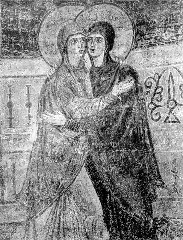Зустріч Марії та ЄлизаветиРозмір зображення: 611:800 піксел Цілування Єлизавети й Анни. Фреска в боковому нефі Іоакима та Анни Софійського собору в Києві. XI ст. Джерело: Історія українського мистецтва. – К.: Наукова думка, 1966 р., т. 1, с. 270. |