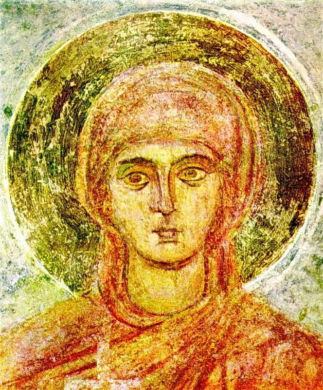Голова святої. Фрагмент фрески Софійського собору в Києві. XI ст.
