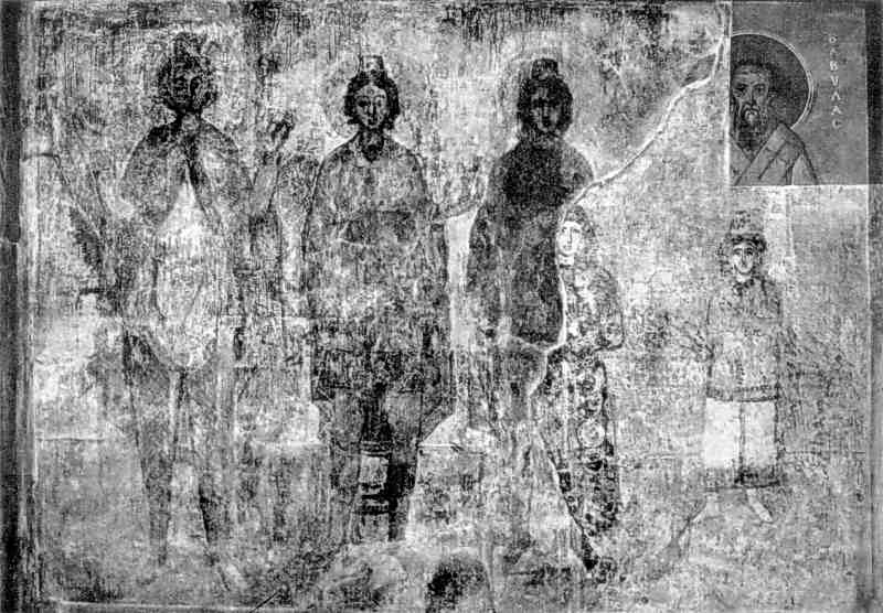 Два молодших сини Ярослава МудрогоРозмір зображення: 800:556 піксел Портрети двох молодших синів Ярослава Мудрого. Фреска Софійського собору в Києві. XI ст. Джерело: Історія українського мистецтва. – К.: Наукова думка, 1966 р., т. 1, с. 278. |