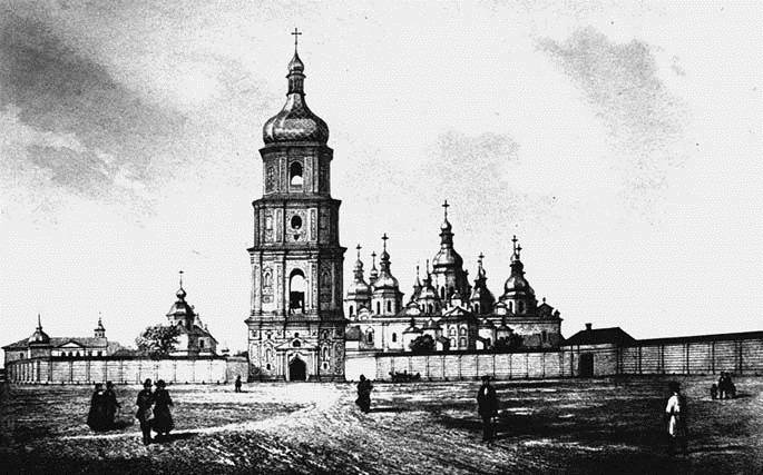 1860-60-і рр. Софійська площаРозмір зображення: 685:427 піксел Літографія. Джерело: Звід пам’яток історії і культури України. – К.: 2011 р., т. 3 (Київ), № 503-9. |